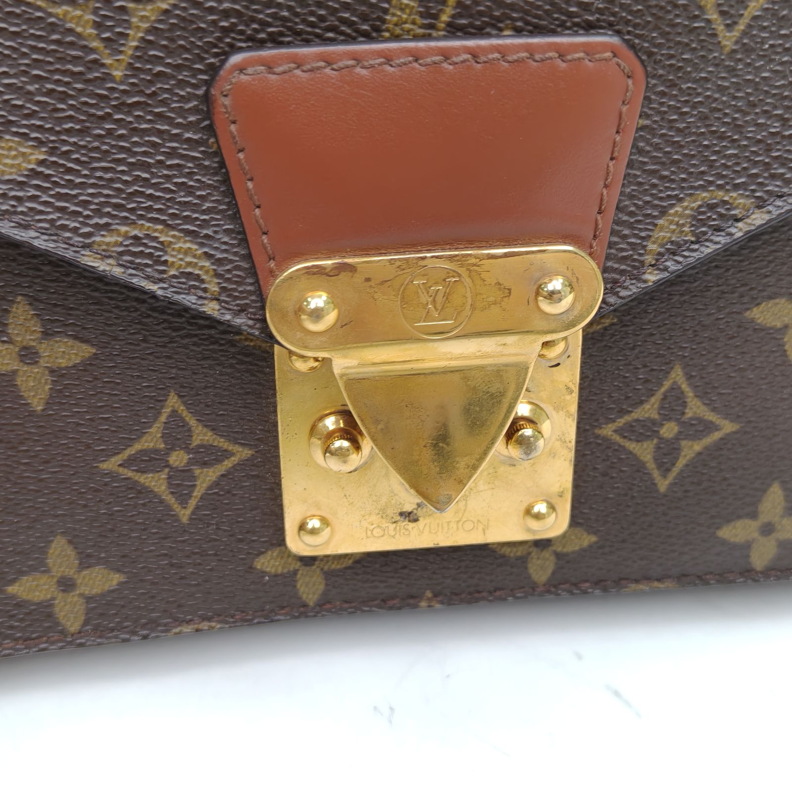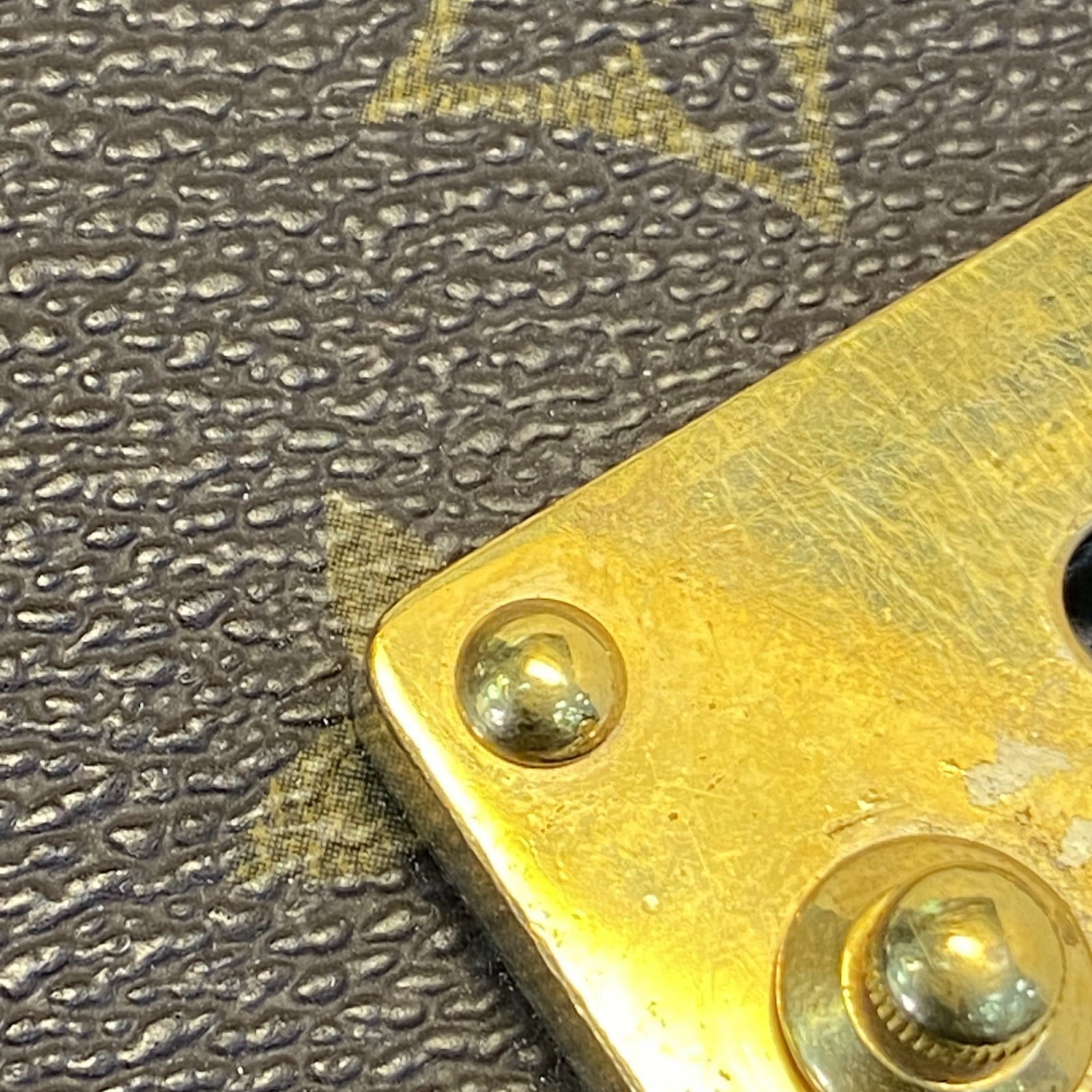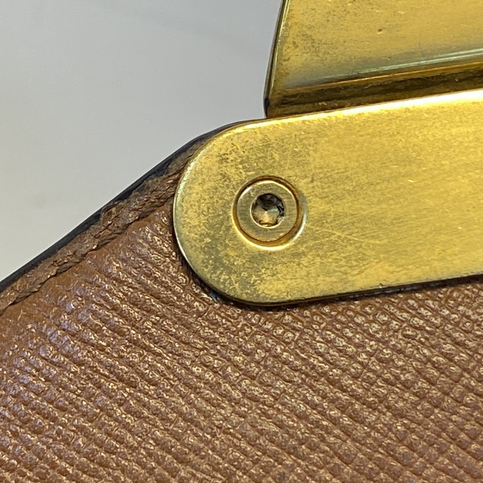 This vintage Louis Vuitton Monceau briefcase is crafted from monogram PVC with leather trim, featuring a structured silhouette and detachable shoulder strap.
