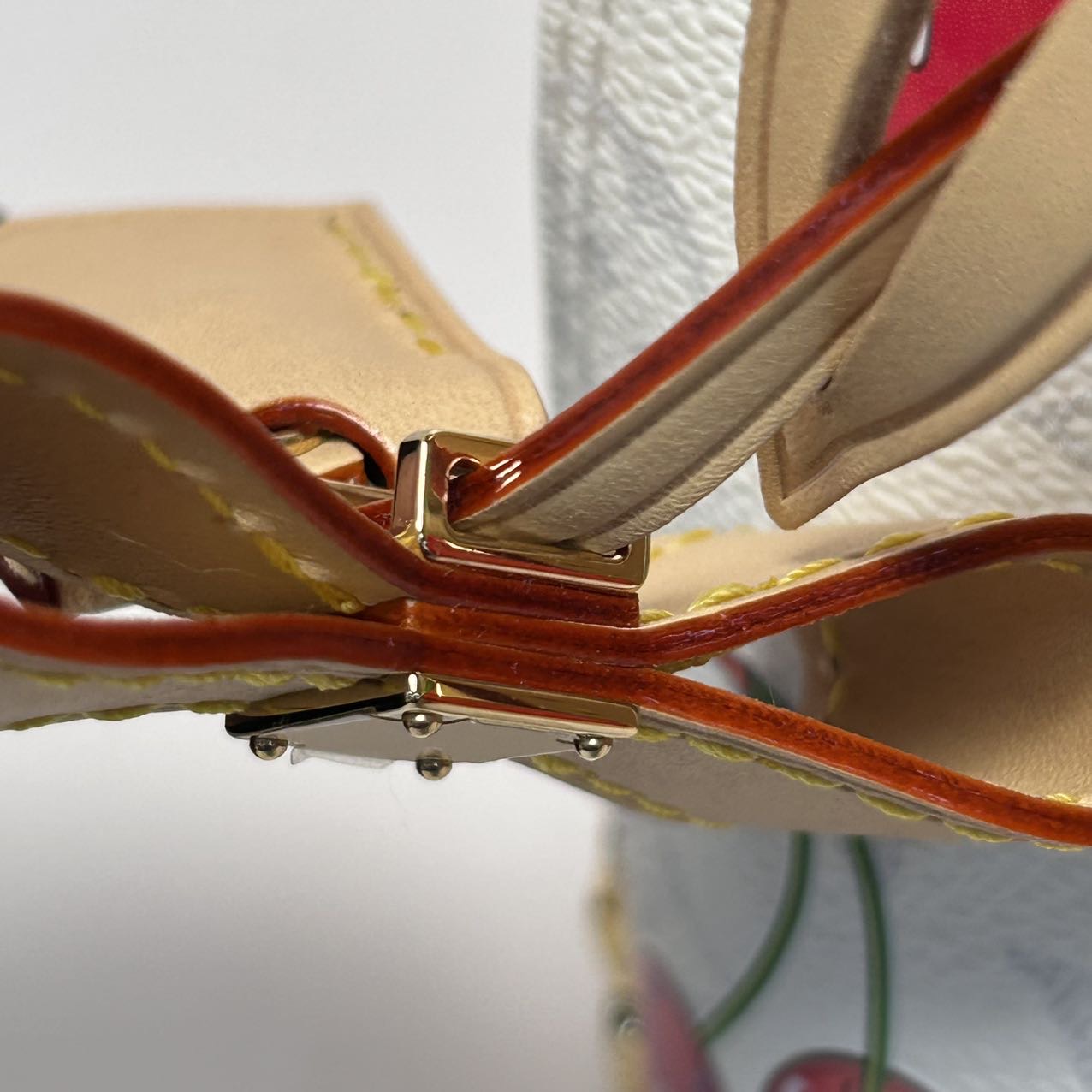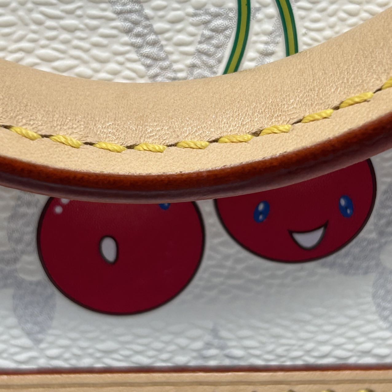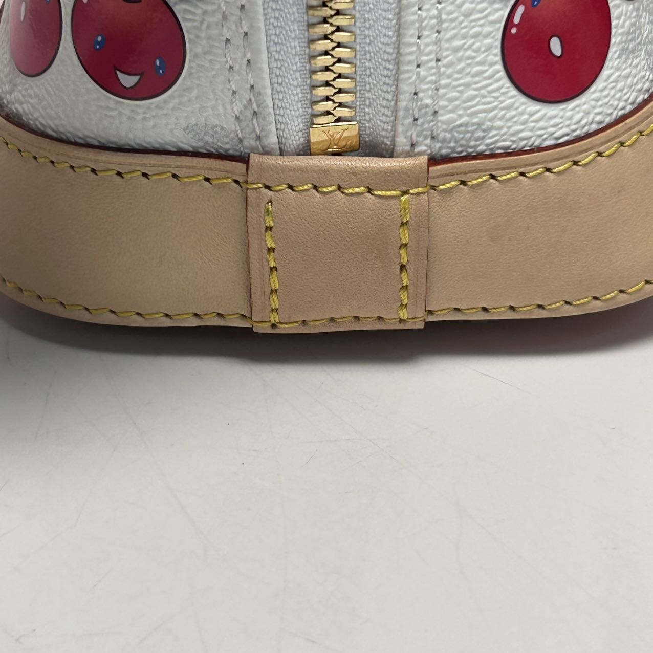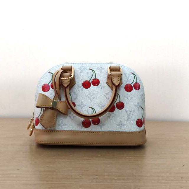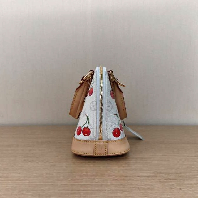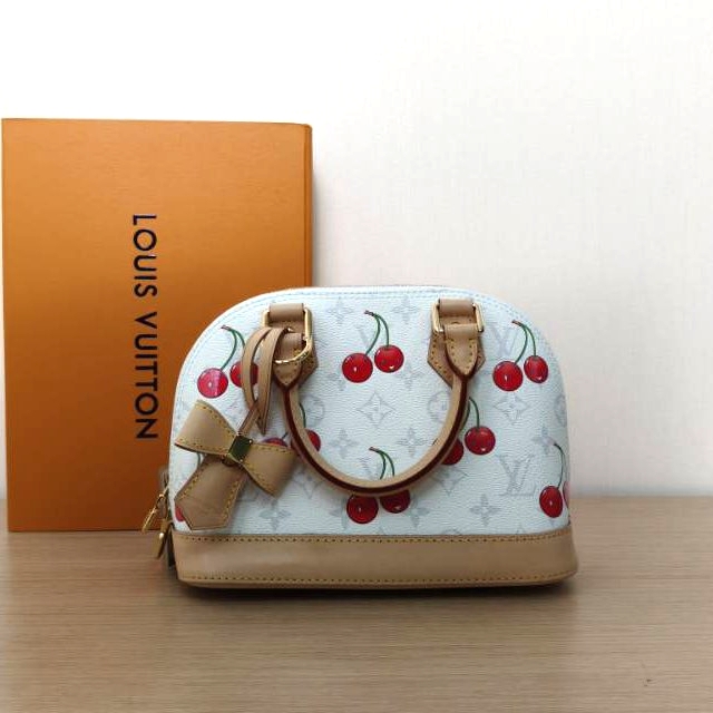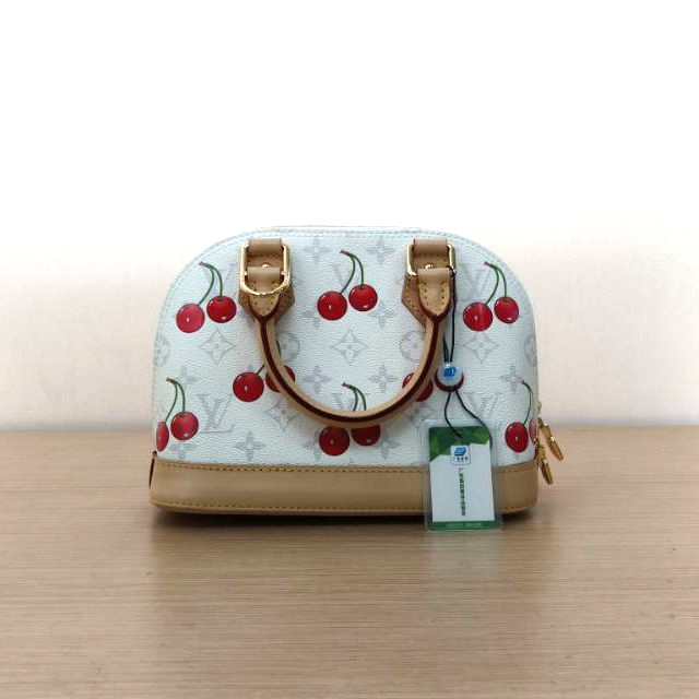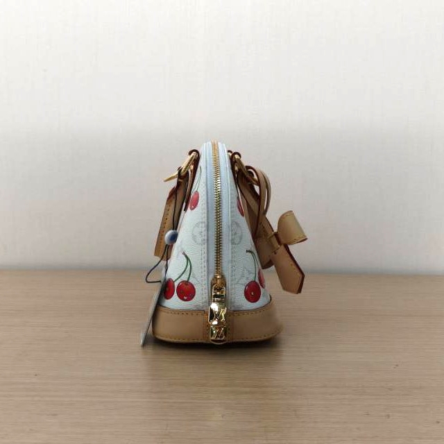 Crafted from white PVC with iconic cherry motif from the Murakami x LV collaboration, this ALMA BB handbag features top handles, a detachable strap and gold-tone hardware, a limited-edition LV classic.