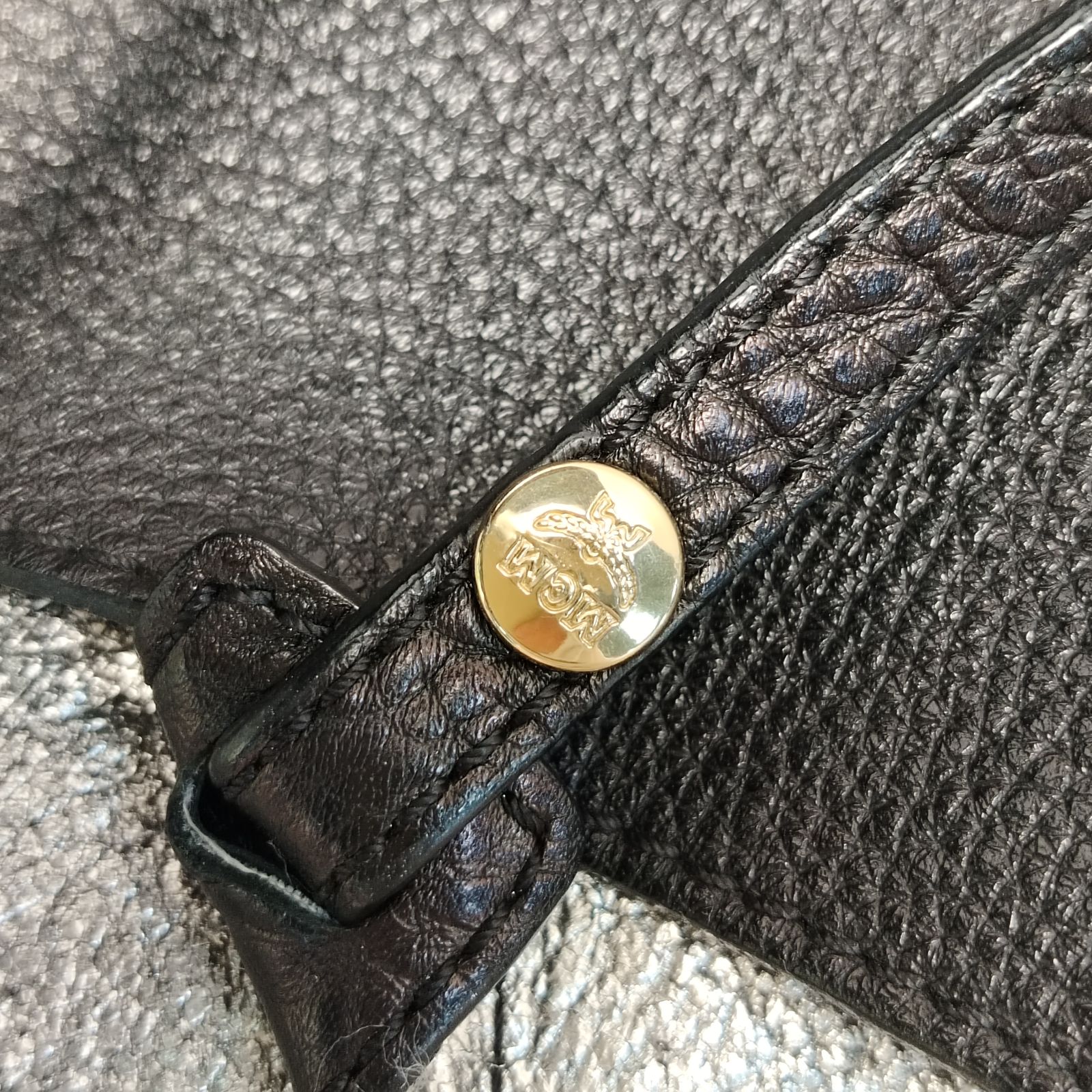 This MCM Black Leather Tote offers a spacious, unstructured silhouette crafted from smooth black leather, embodying the brand’s understated Korean luxury. The minimalist design delivers practicality and versatility, ideal for daily use and work settings, while the subtle logo hardware adds a refined touch. It balances functional elegance with modern simplicity, making it a reliable companion for everyday life.