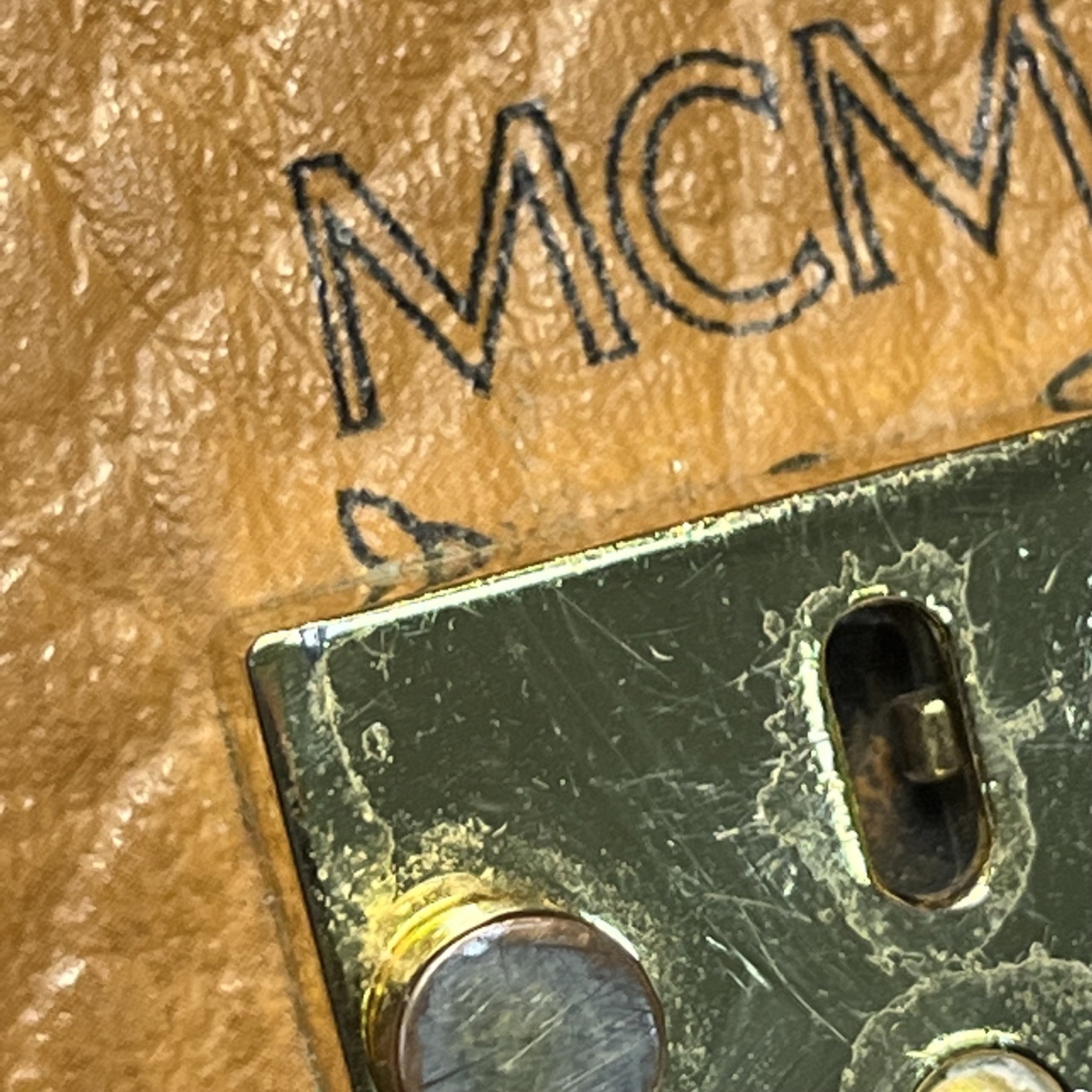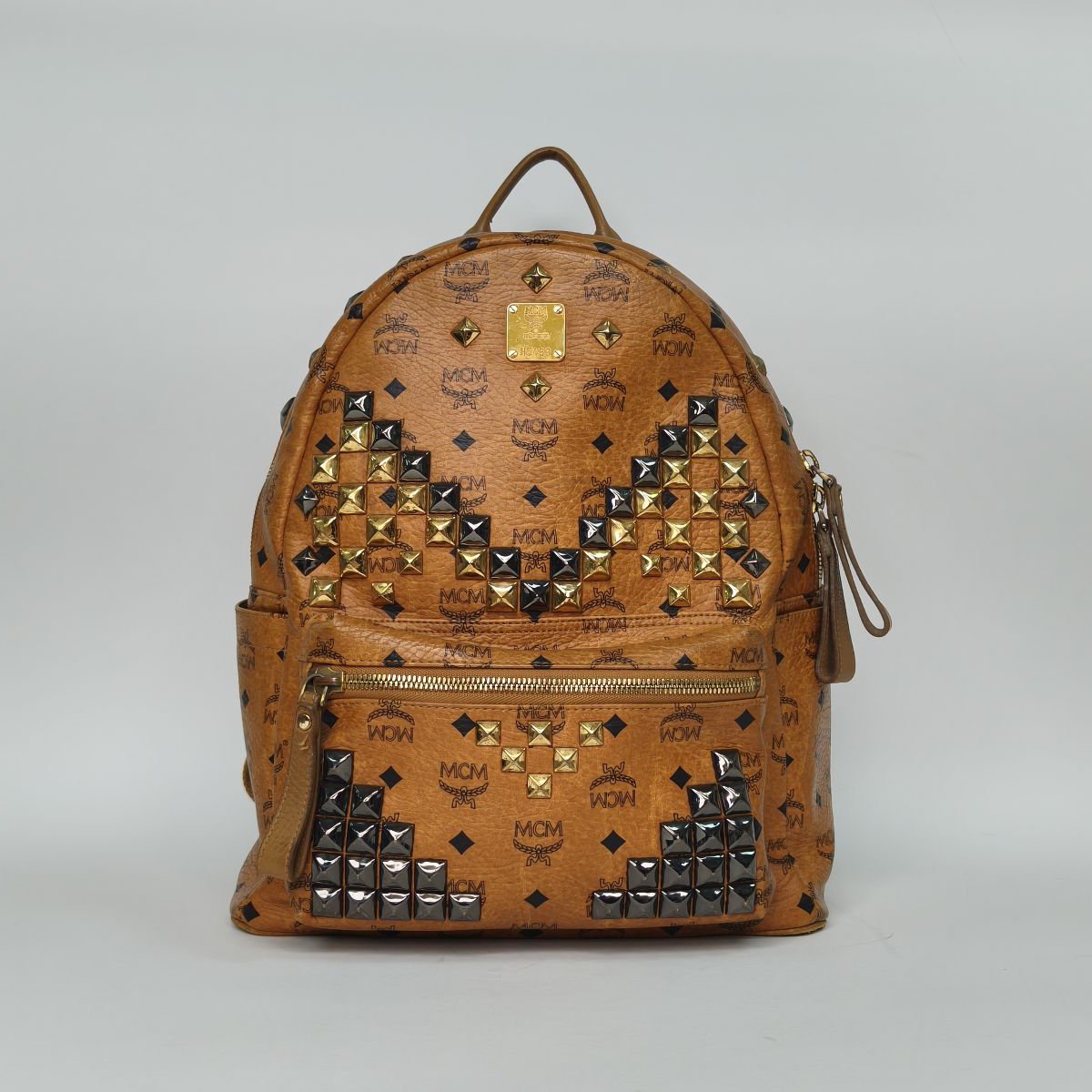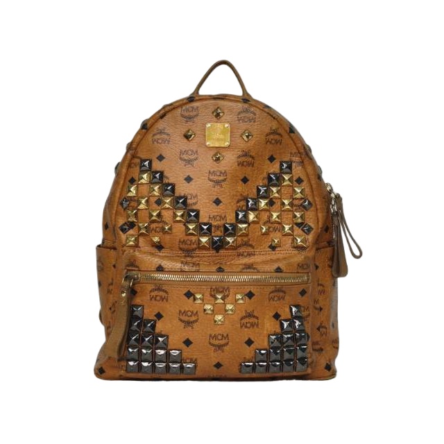 MCM Studded Backpack Large 31.5cm in Khaki Artificial Leather
