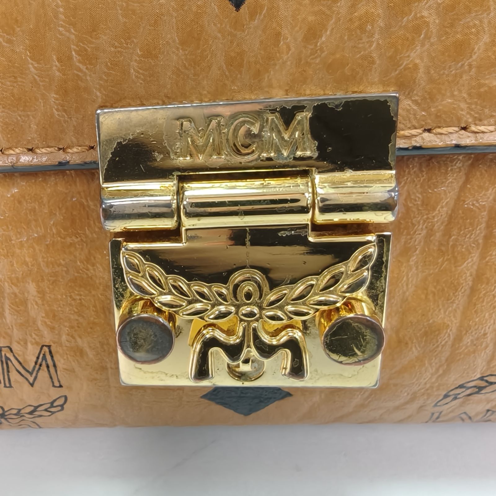 MCM Cognac Visetos Classic Envelope WOC Chain Bag