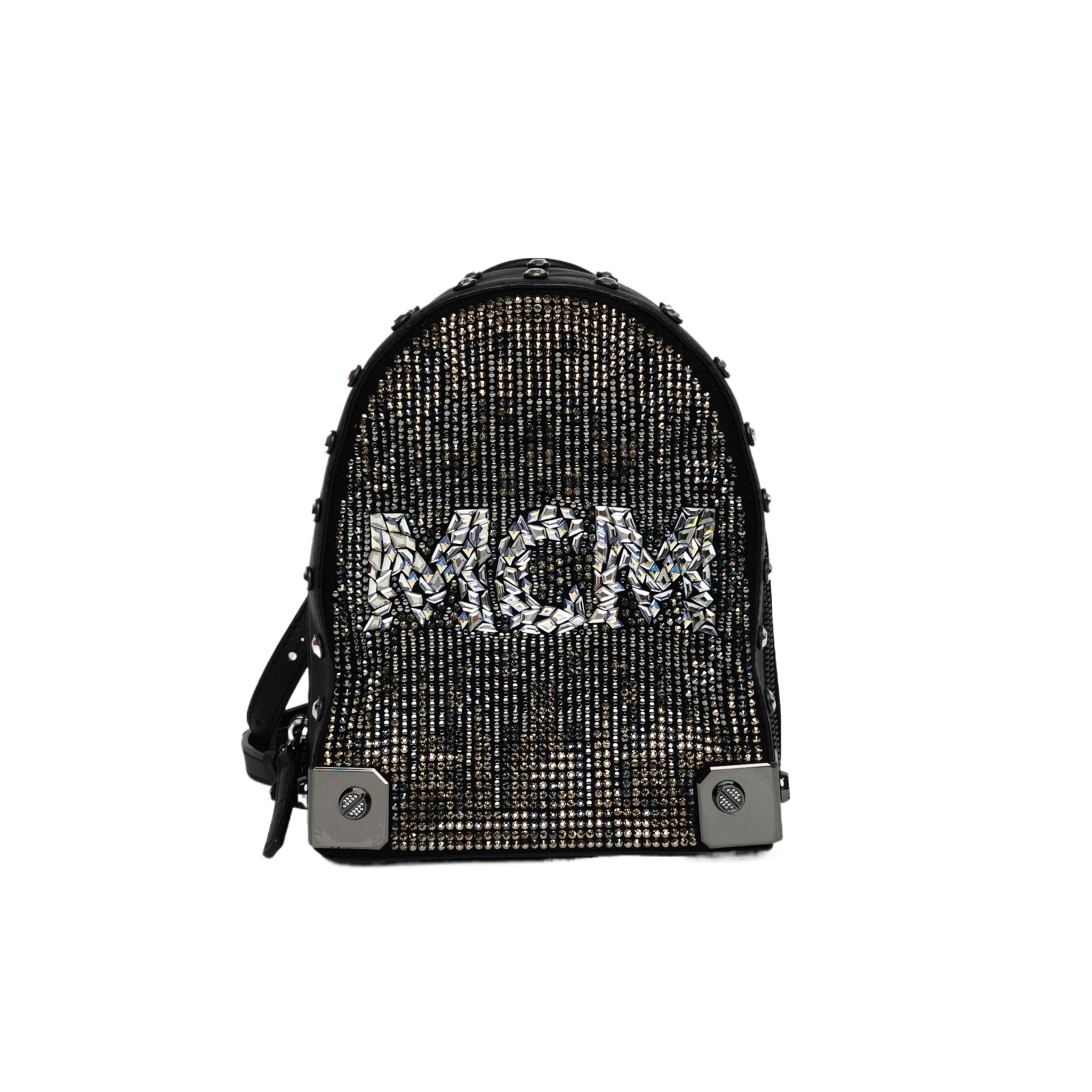 MCM Mini Backpack in Black Leather with Rhinestone