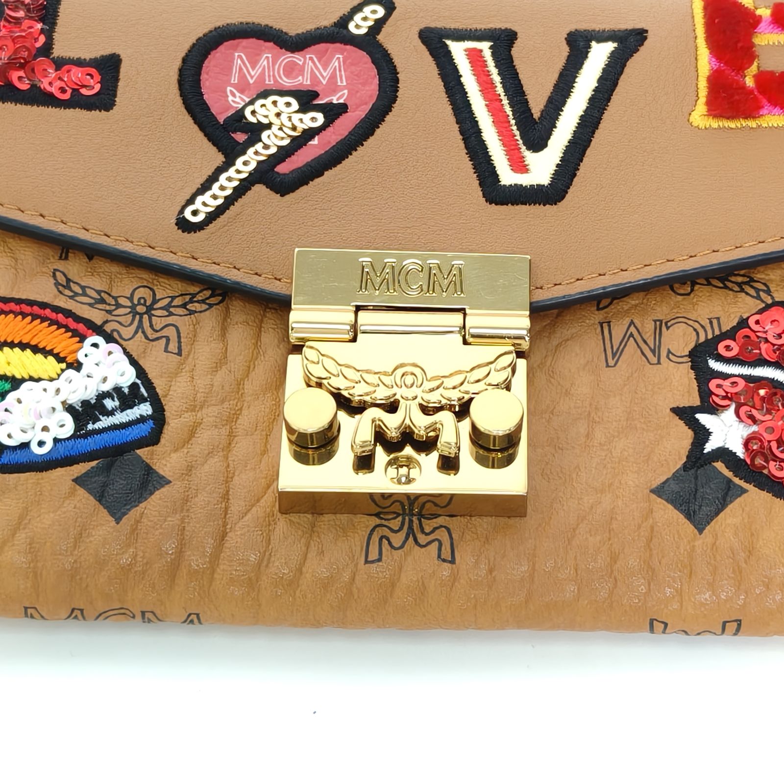 MCM Patricia Love Chain Wallet 19cm in Tan Leather