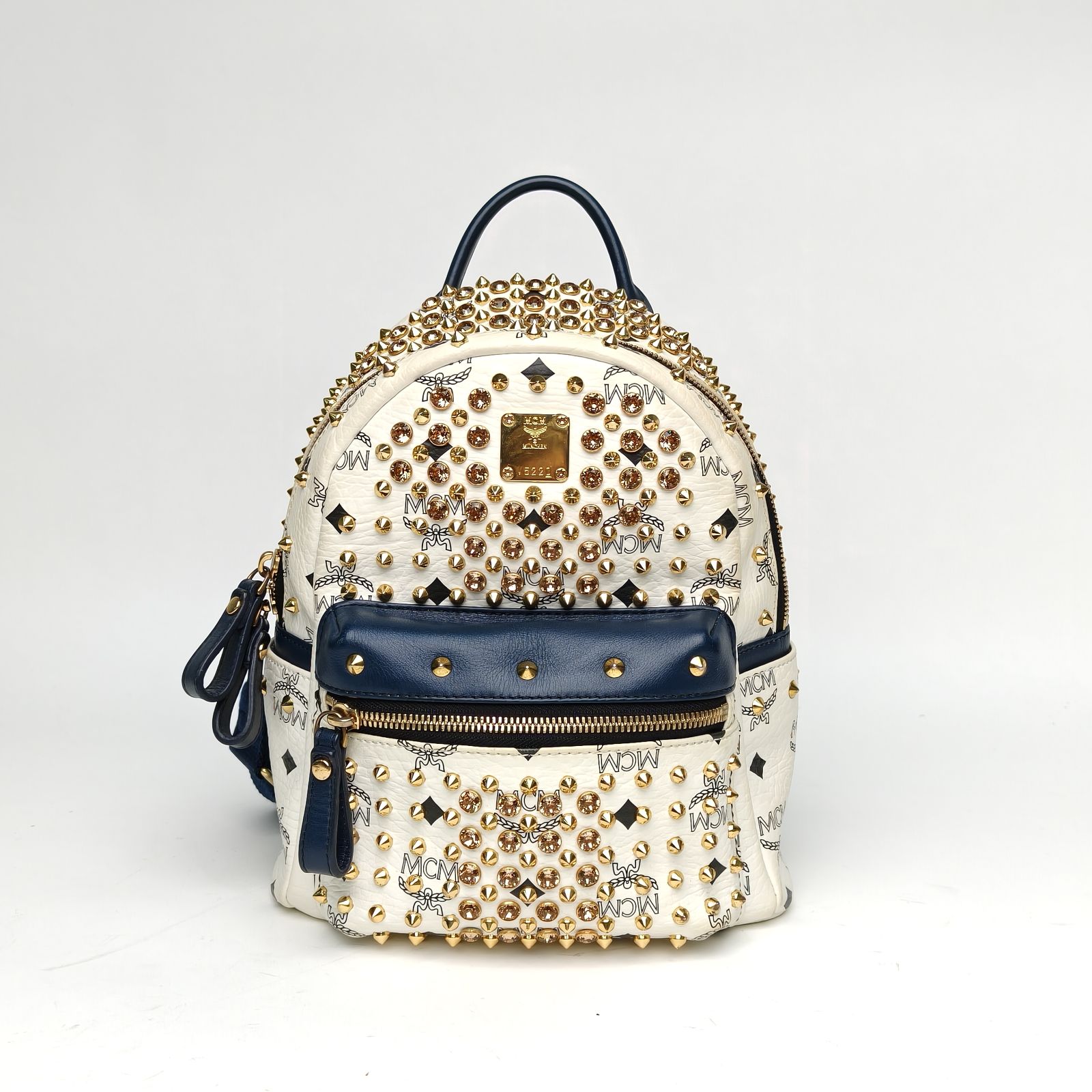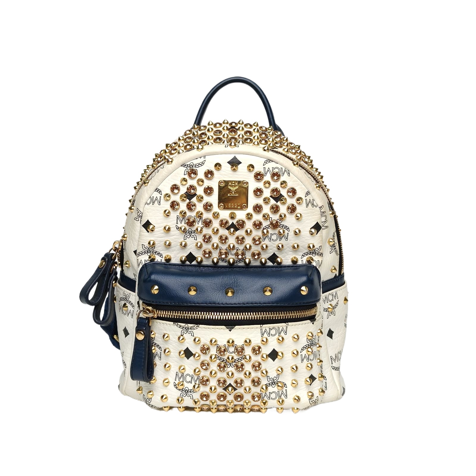 MCM Two-Tone PVC Small Backpack White Leather Studded