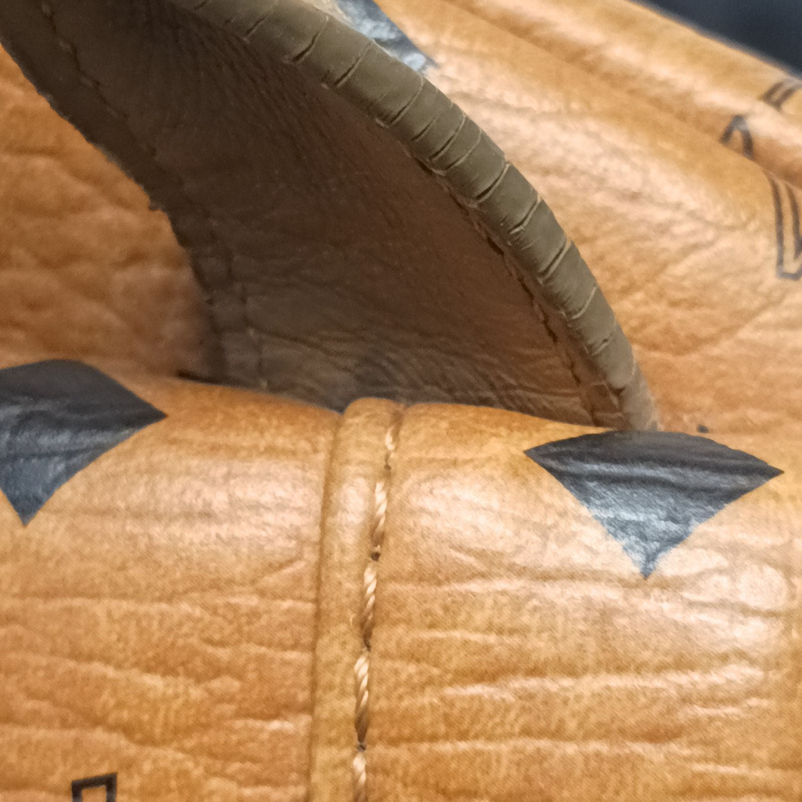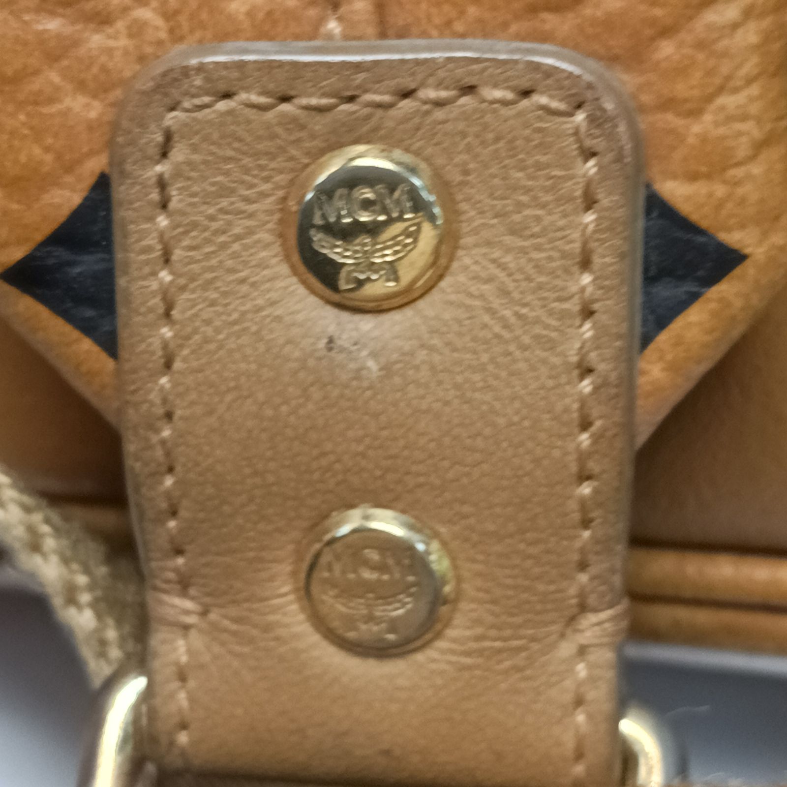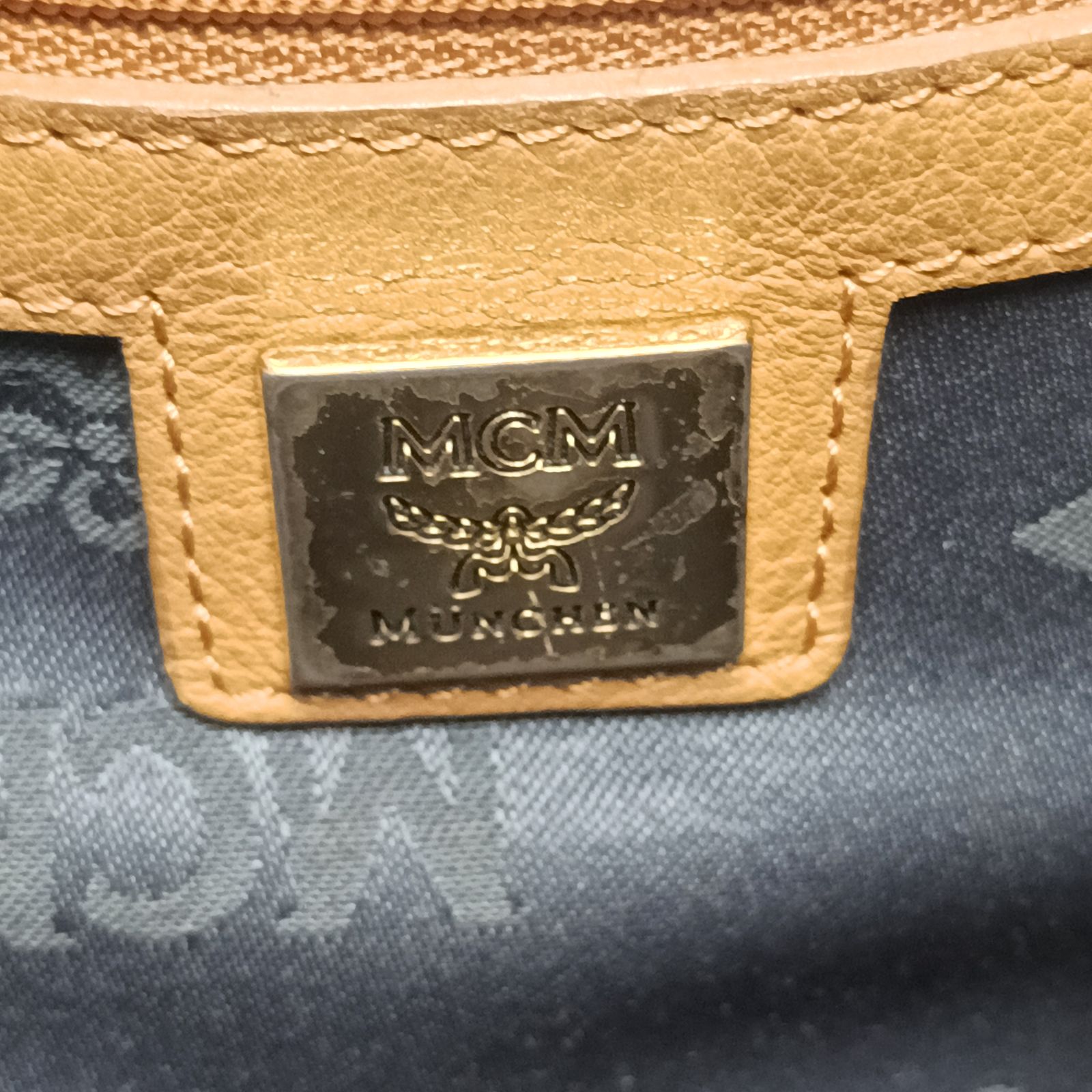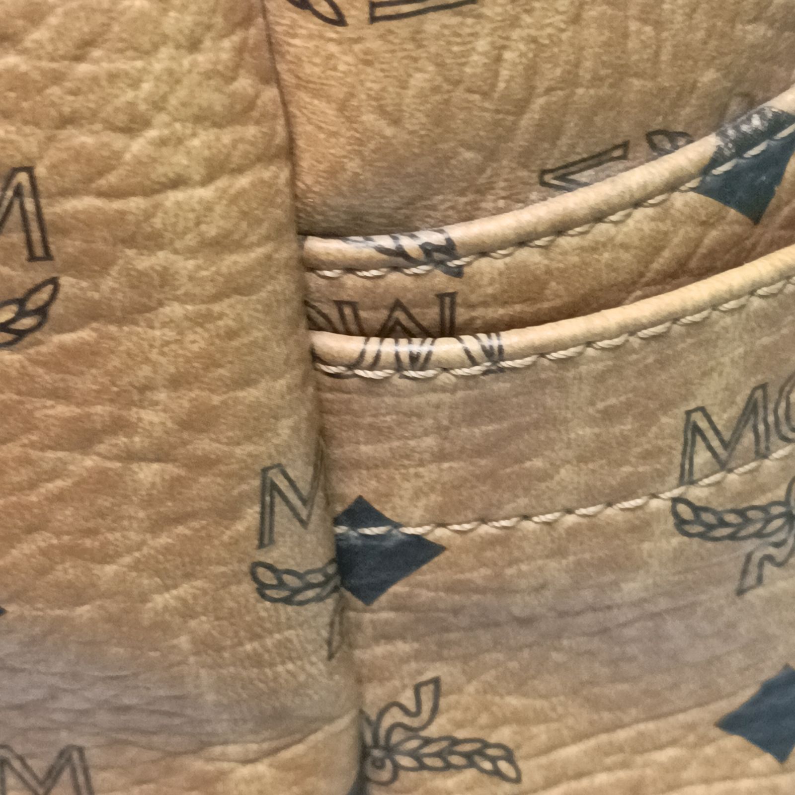 Crafted from khaki artificial leather with iconic MCM logo and rivets, this large backpack is a stylish daily accessory.