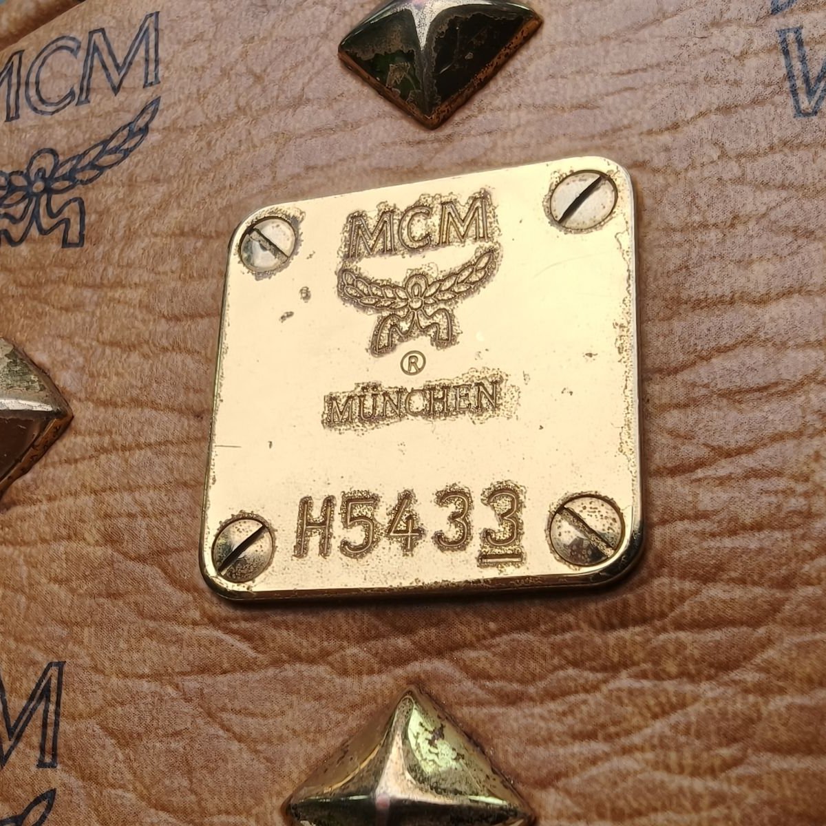 MCM Studded Backpack Large 31.5cm in Khaki Artificial Leather
