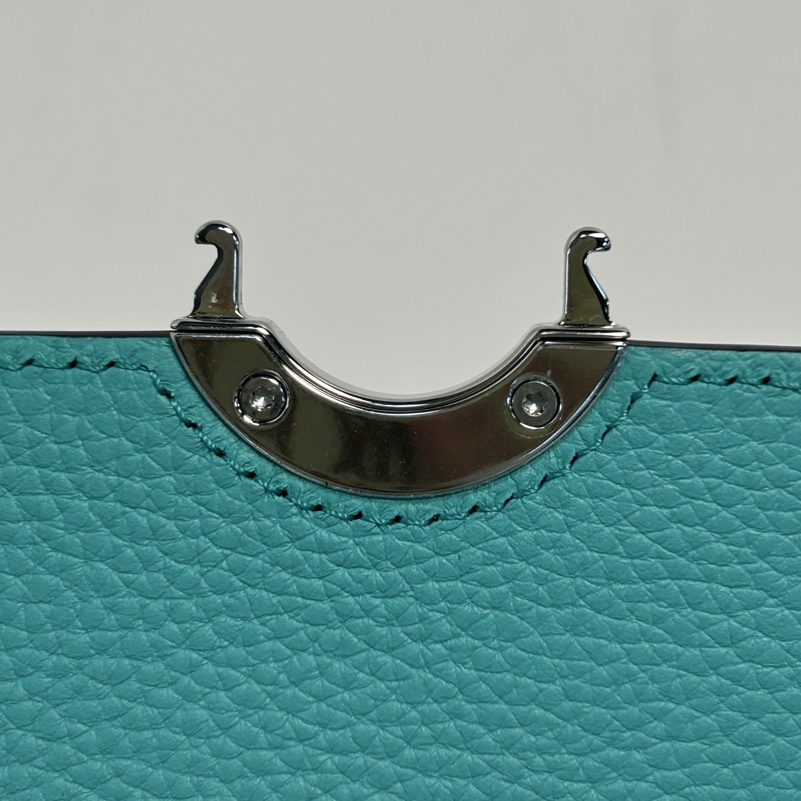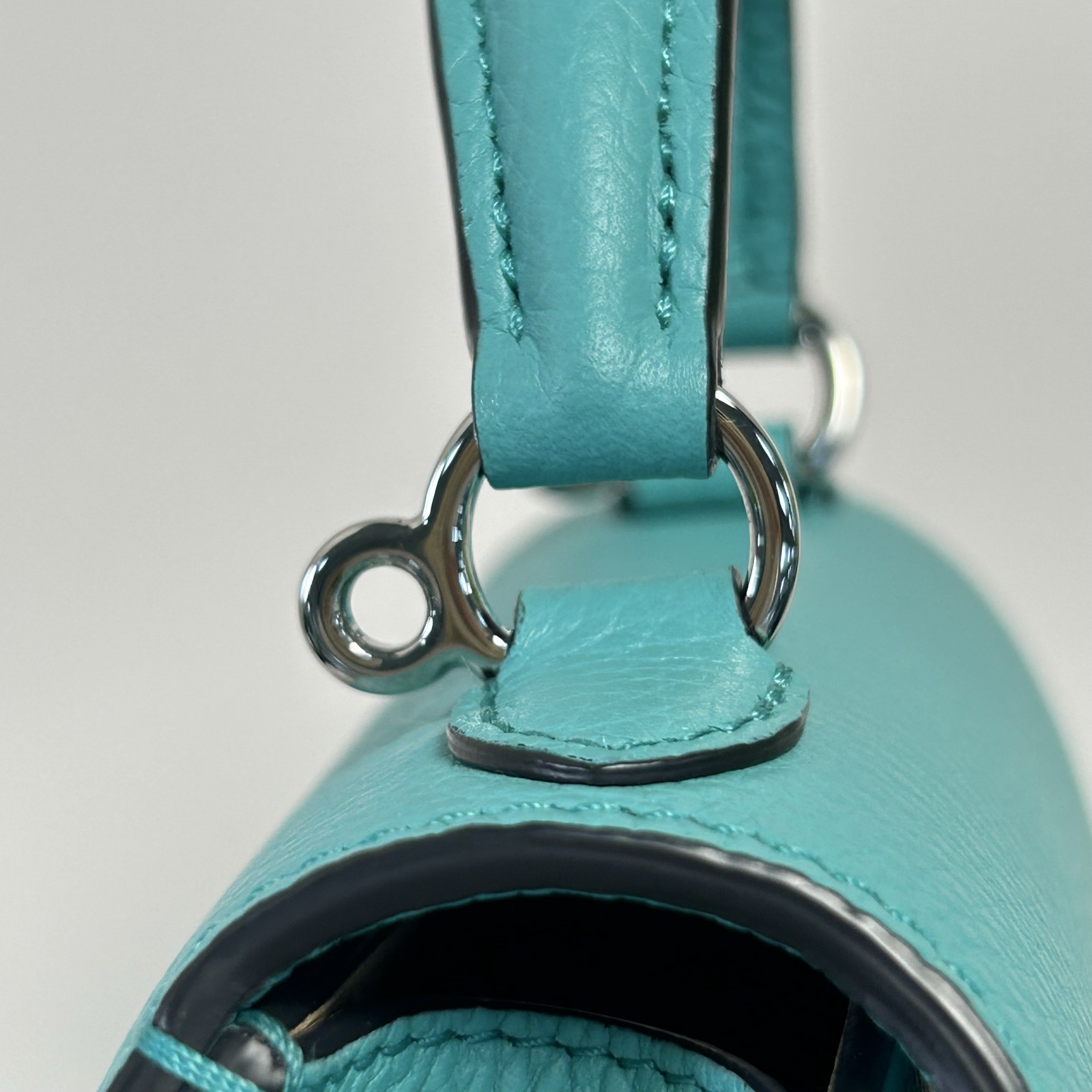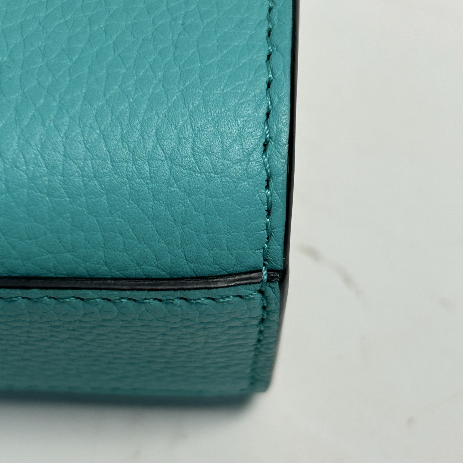 Made from green leather with signature M hardware, this Rejane Nano 14.5 bag features a detachable strap, a cute daily luxury piece.