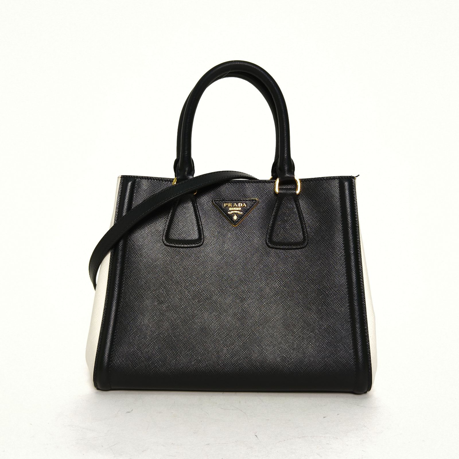 Crafted from premium leather with iconic PRADA logo, this Galleria tote mini features a top handle and detachable strap, a stylish daily luxury piece.