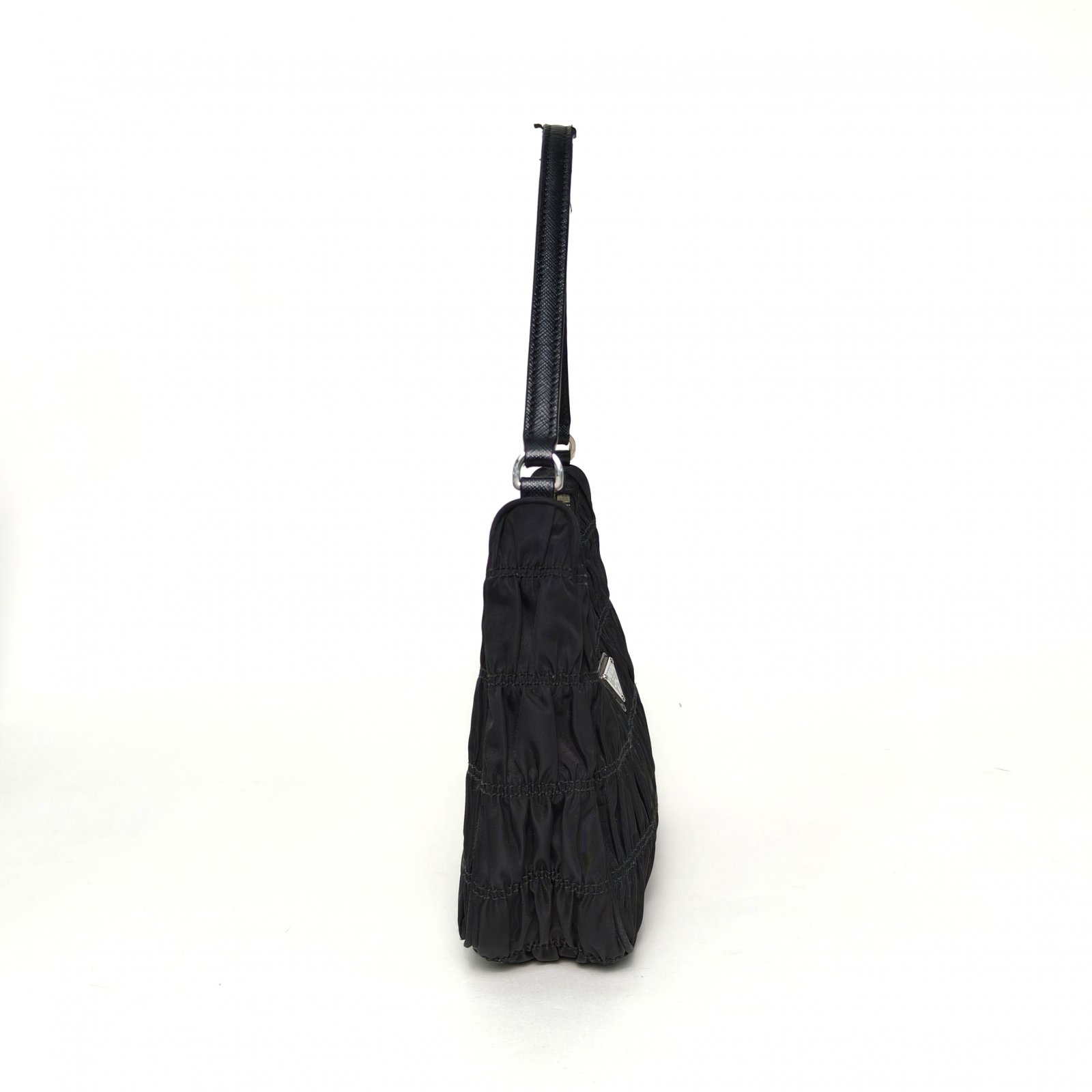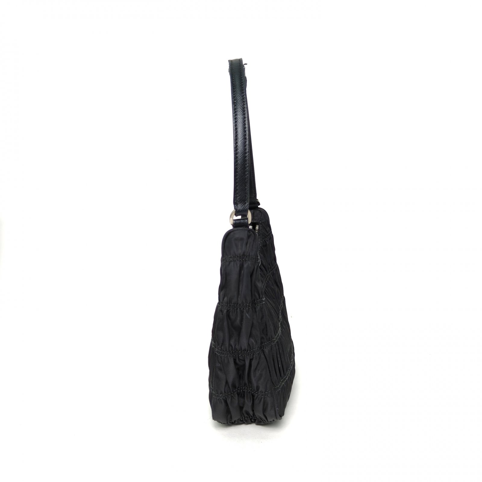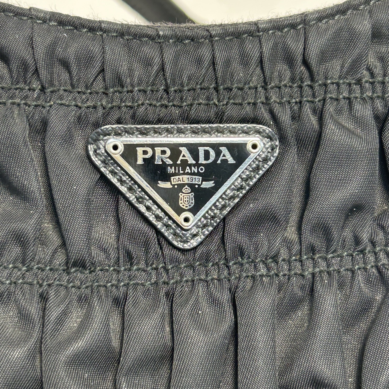 Prada Hobo Shoulder Bag in Pleated Black Nylon
