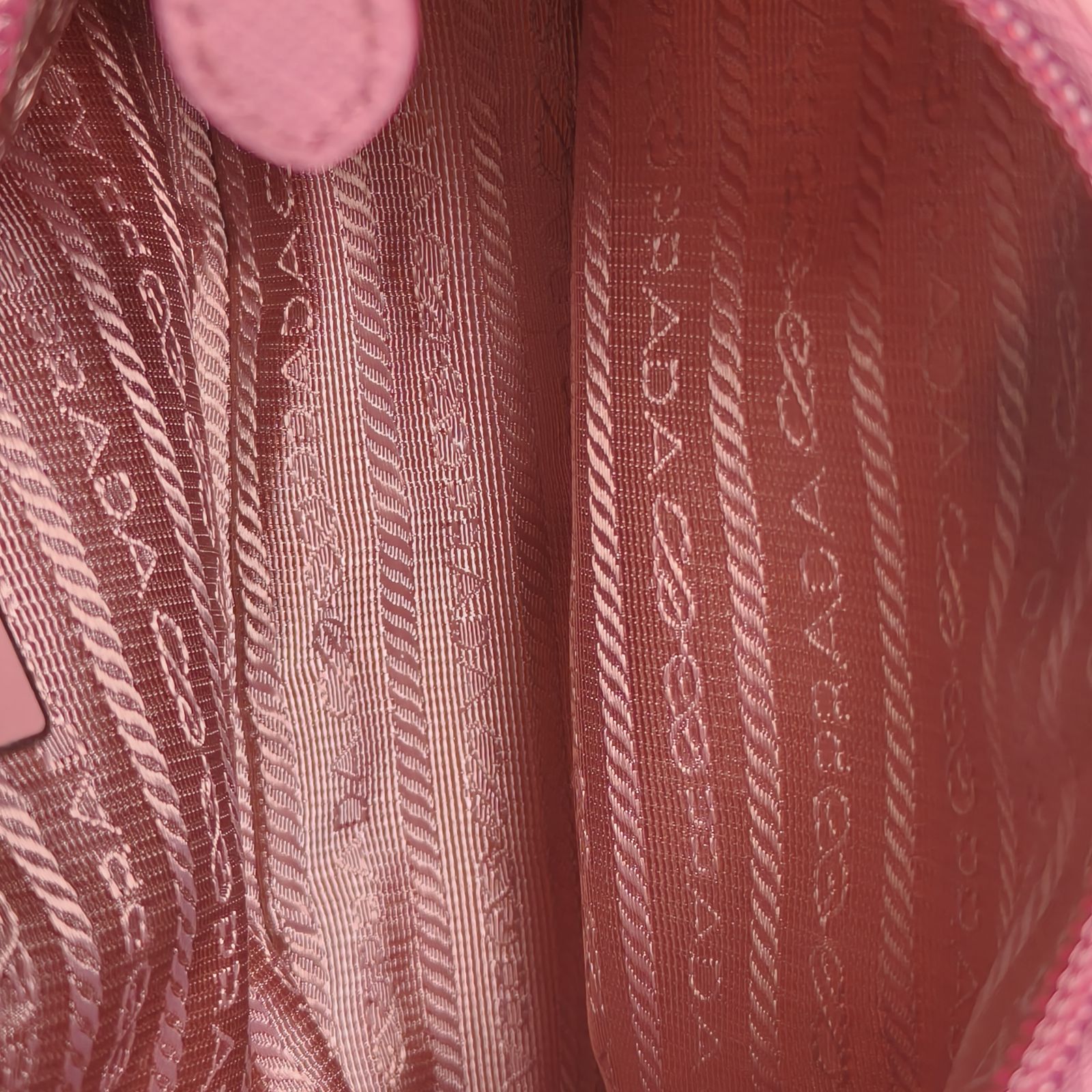 Made from pink nylon with iconic Prada logo, this Hobo underarm bag features a detachable strap, a stylish daily luxury piece.