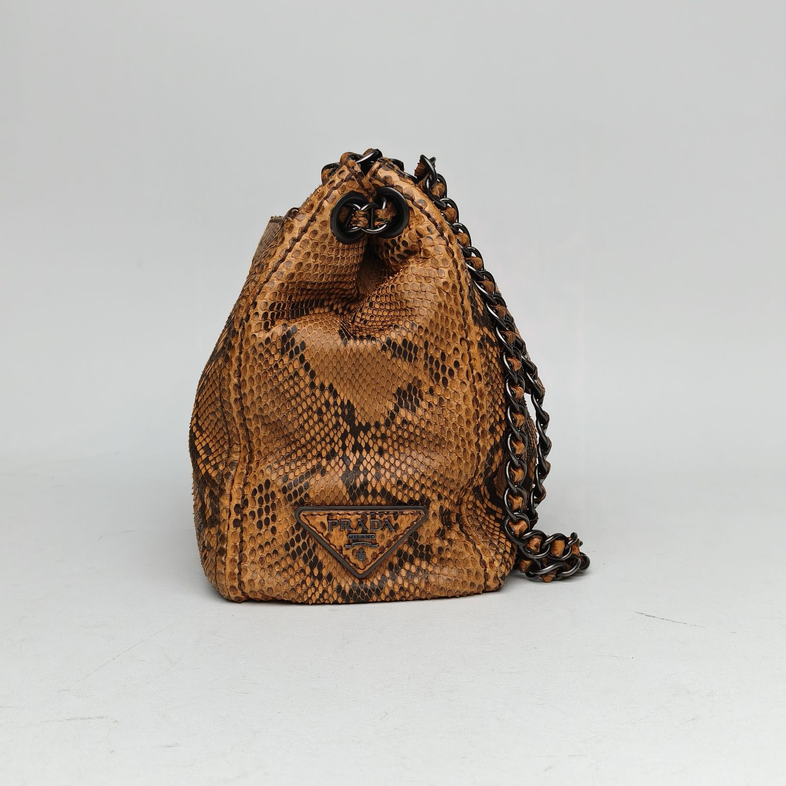 Crafted from premium snakeskin with iconic PRADA hardware, this chain bag features a detachable strap, a stylish daily luxury piece.