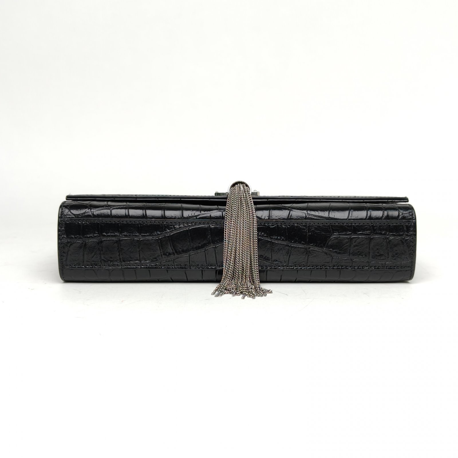 Saint Laurent Kate Medium 24 Black Crocodile Embossed Leather