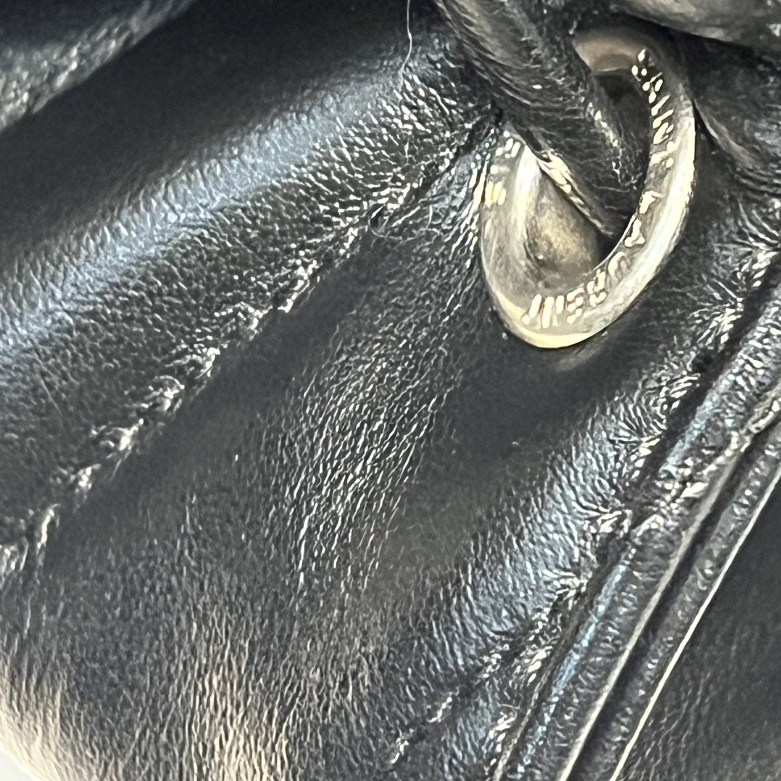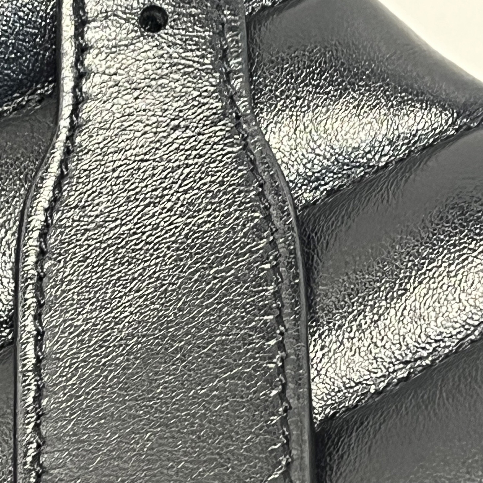 This Saint Laurent Loulou Backpack features the iconic chevron-quilted pattern in smooth black leather, embodying the brand’s sleek, edgy French luxury. The structured silhouette offers a versatile carry ideal for daily use and casual styling, while the signature YSL monogram and drawstring closure add a refined, contemporary touch. Meticulously crafted in Italy, it delivers understated opulence that elevates any ensemble with timeless sophistication and modern allure.