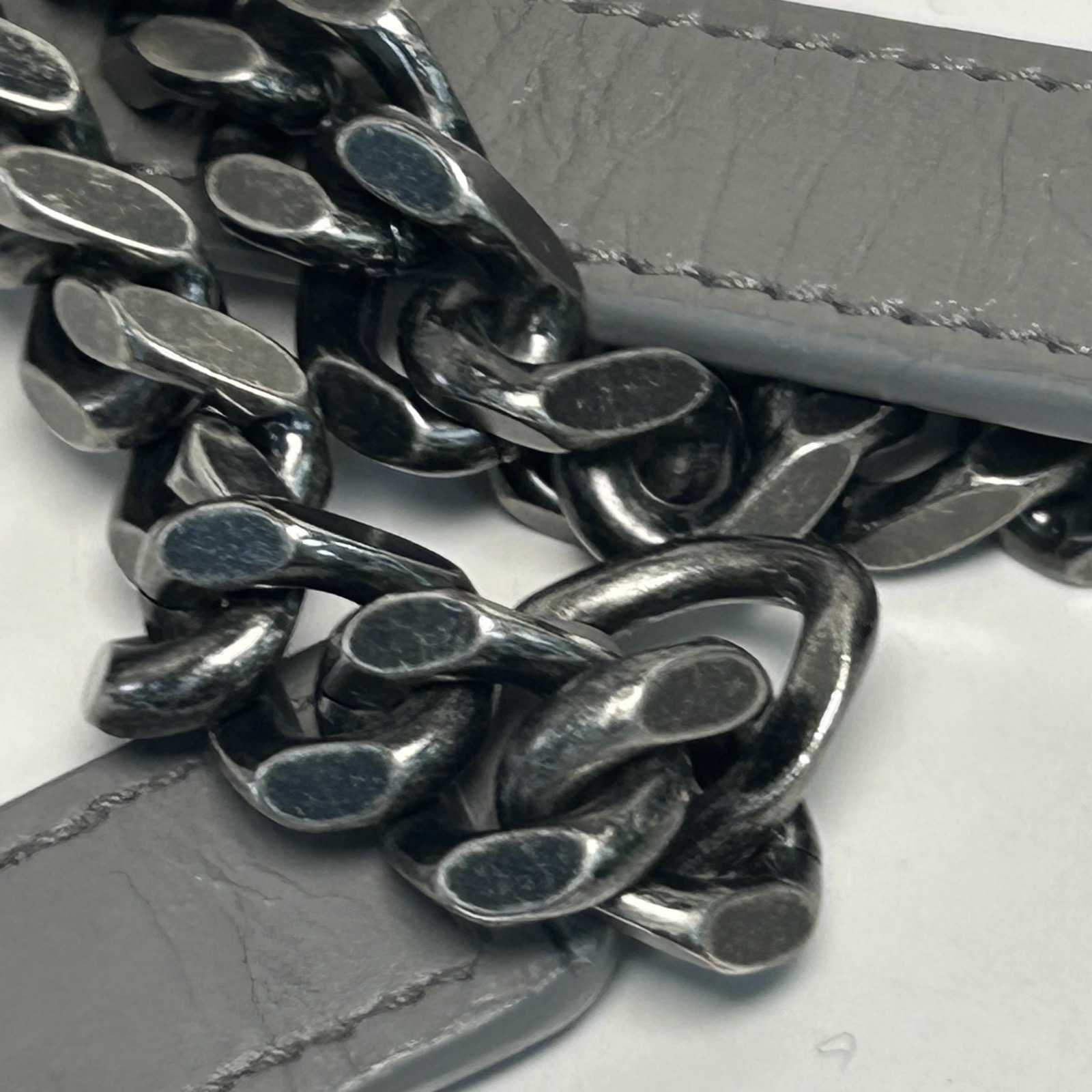 Embodying a chic and slouchy luxury crossbody bag, the Saint Laurent Niki Medium is crafted from elephant grey leather with quilted stitching and polished silver hardware. The chain strap adds a sophisticated touch to the design.