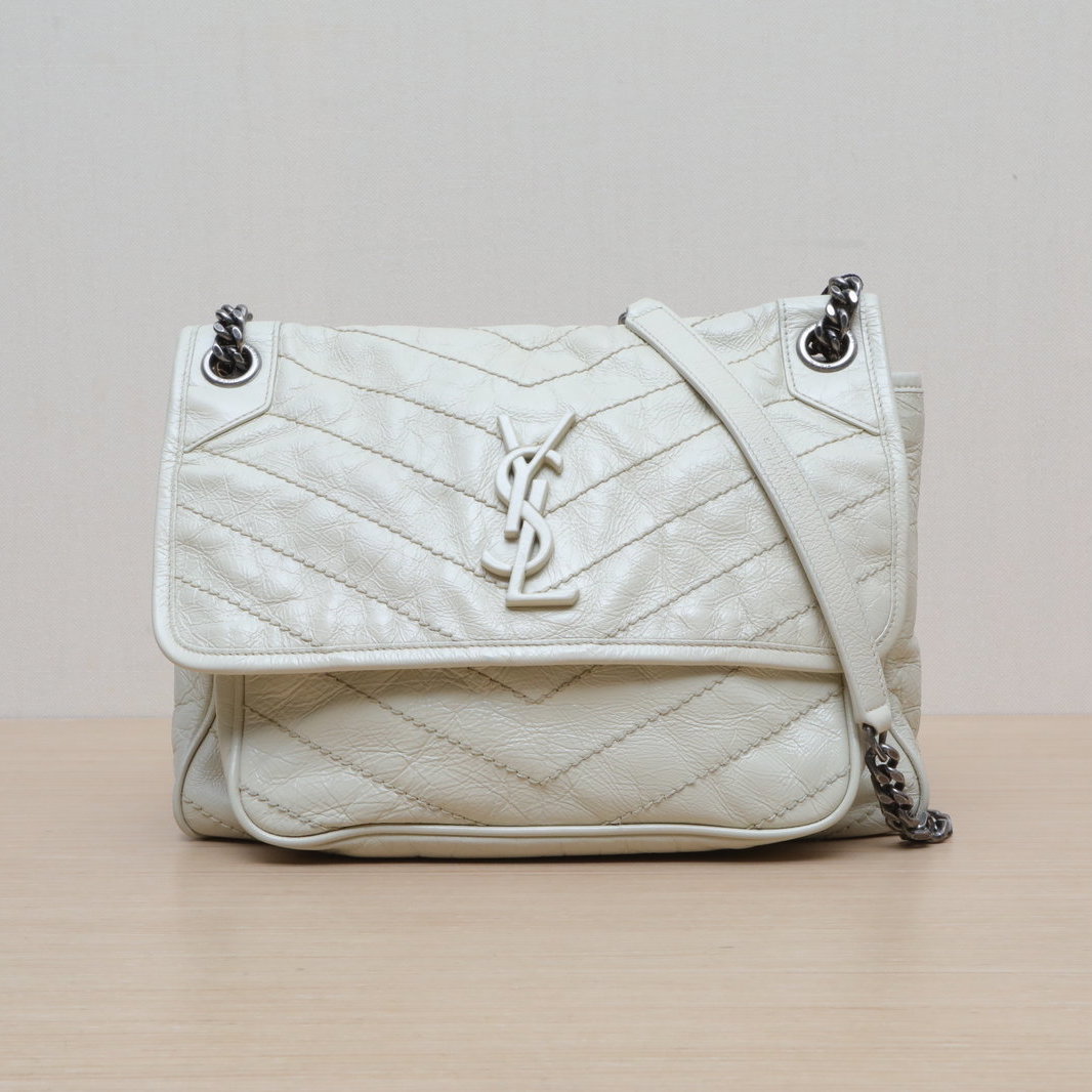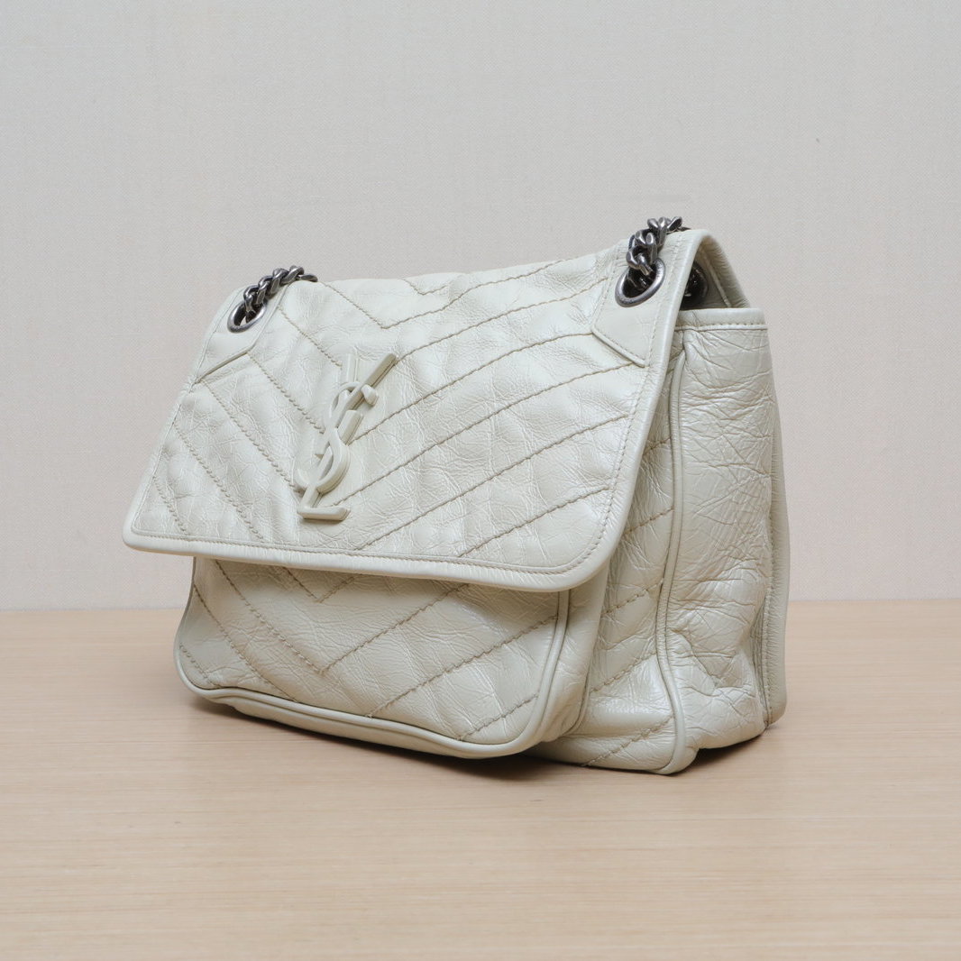Crafted from premium leather with iconic YSL hardware, this Niki medium 28 bag features a detachable strap, a stylish daily luxury piece.